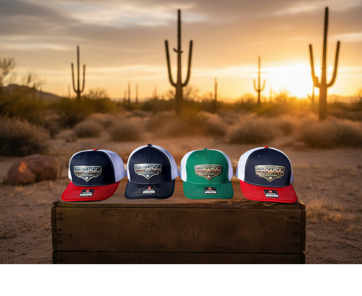 Warthog Customs hats feature 3D UV-printed badges on Richardson 112 truckers - lightweight, durable, and made for life in the shop, on the road, or out in the desert.